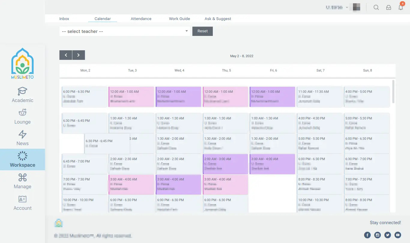 - Custom theme layout for classes, class dashboard, attendance table, and calendar.